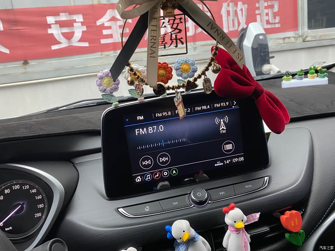 八英寸大屏,里面的功能非常实用。因为是新车所以我给布置了很多自己喜欢的元素在车内,感觉这也是属于自己的一方小天地了。还有比较满意的是仪表台和座椅上走的线,蓝色线把座椅切割分为两半,感觉不再那么单调呆板。