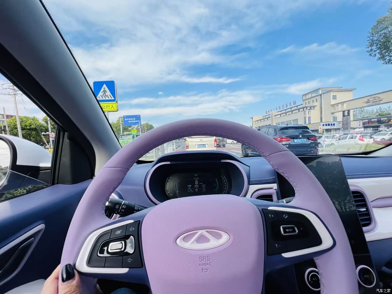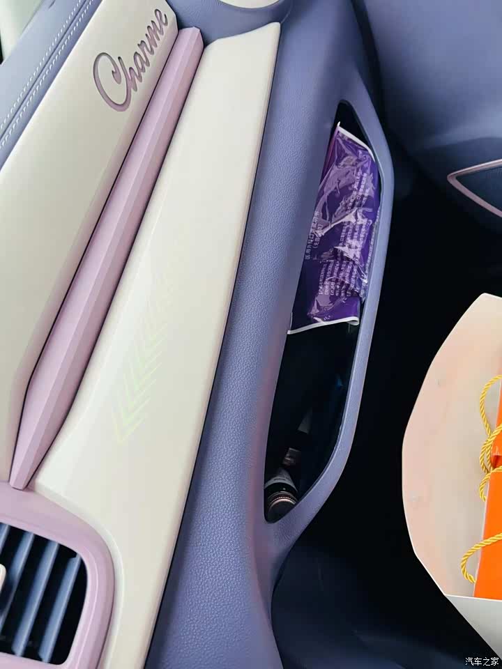 我特别喜欢紫色,所以当我老公推荐我买辆白色的高配,该有的功能都有,再贴改色膜。我怎么都不同意,我觉得改装的就是改了表面的皮囊,里外配色就会不协调。所以多花了几千买了里外精致紫的魅