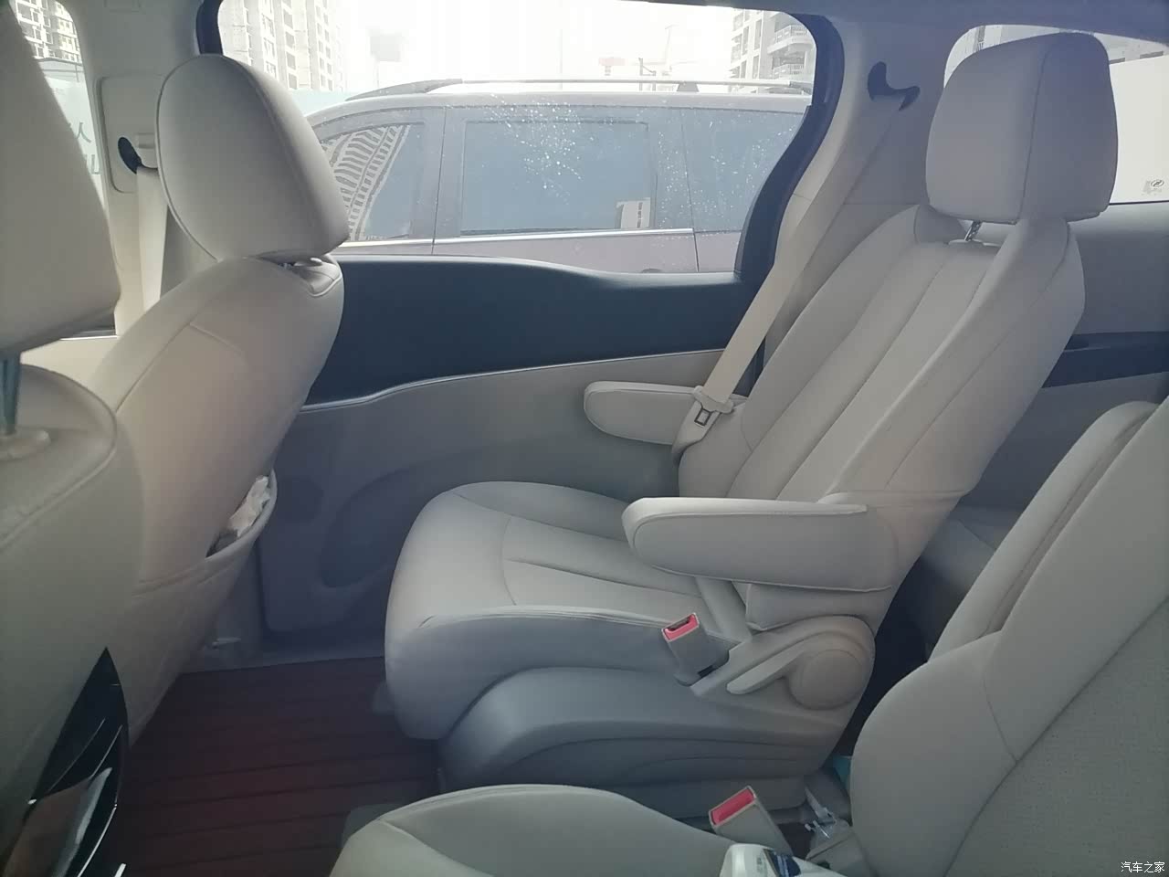 车内3排座椅的高度是阶梯式设计,坐在后排很前看前面的视线开阔很舒服。2排座椅调节非常简单,前后调节和靠背调,靠背最大角度可以调整到睡觉姿势。第二排座有左右的独立扶手,放胳膊在上面很舒适,还有多档位的自由调节。