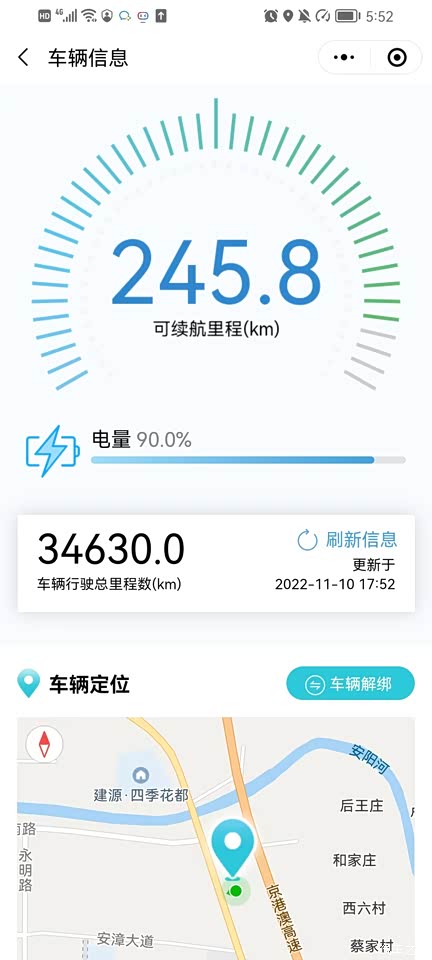 小蚂蚁的APP,小程序,真的是超好用,打开手机就能看到车辆的:可续航里程、电量、车辆行驶总里程、车辆定位。很实用。