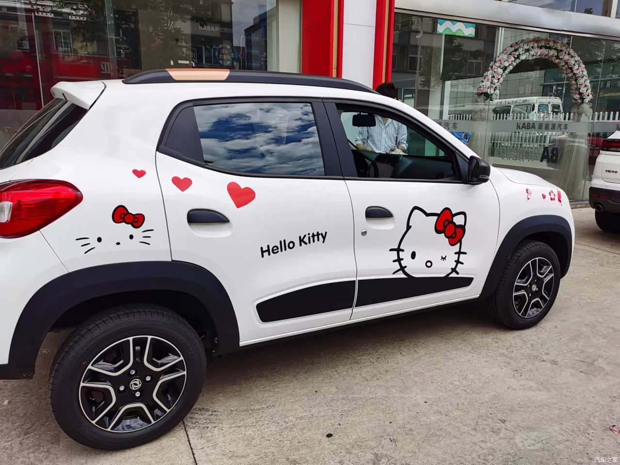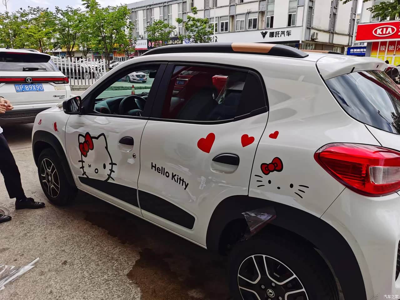 白色的微型SUV,不丑也不说多好看,我觉得可以看得下去就行,买了贴纸装饰下,更顺眼了。