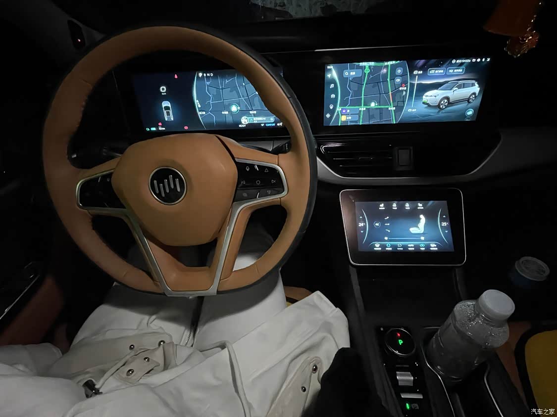纯皮材质,座椅舒服,内饰风格简约舒适,三块屏幕满足导航需要,空调制冷效果不错。车载导航路线需要自己提前选择,默认的路线更倾向路况而非距离。