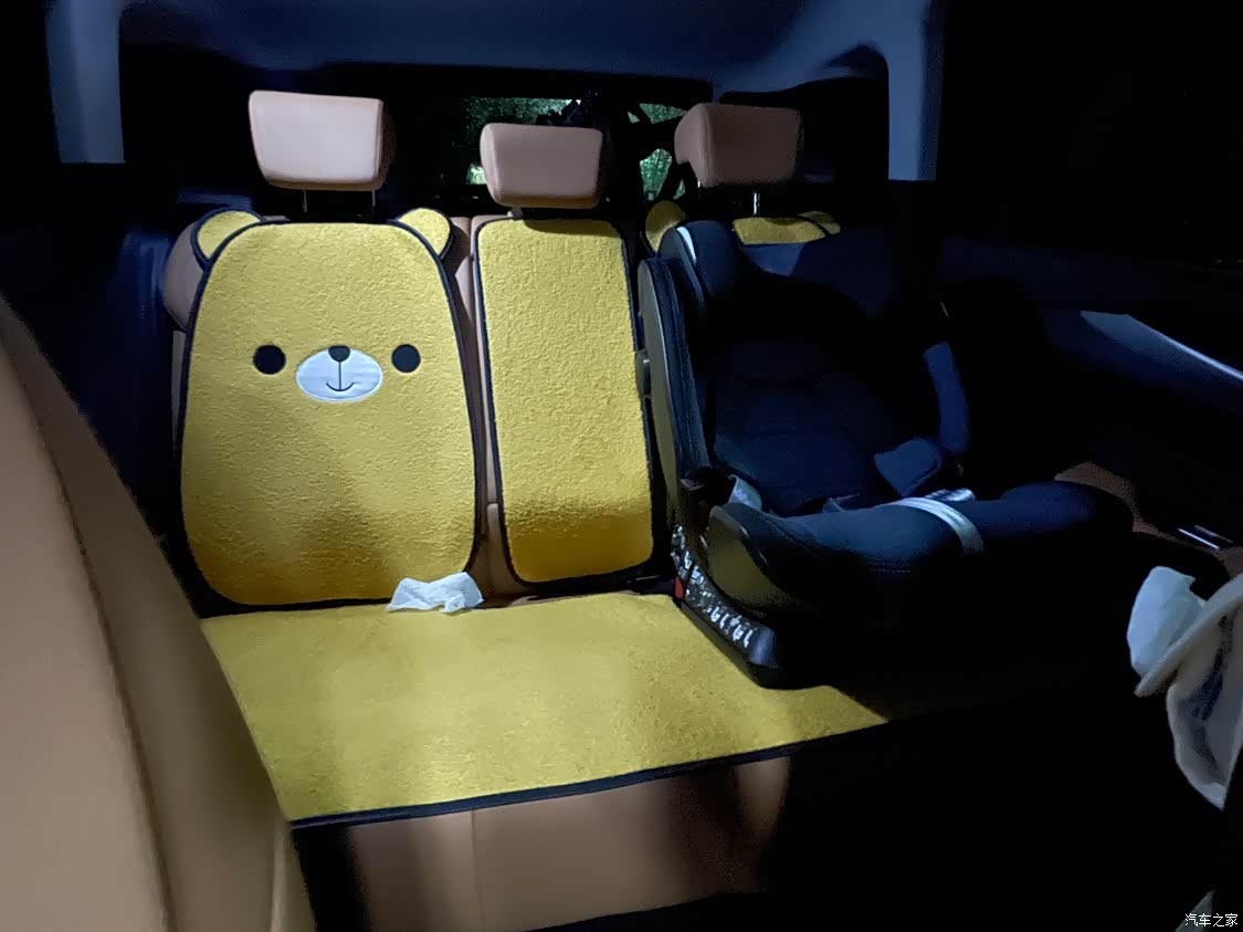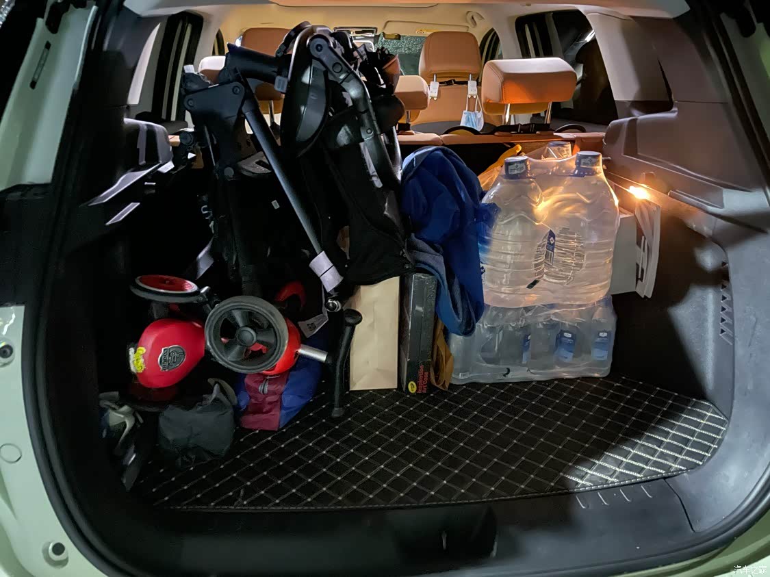 空间很大,放好孩子的安全座后,后排空间基本不受影响。后备箱空间非常大,就是我家楼下的小仓库。