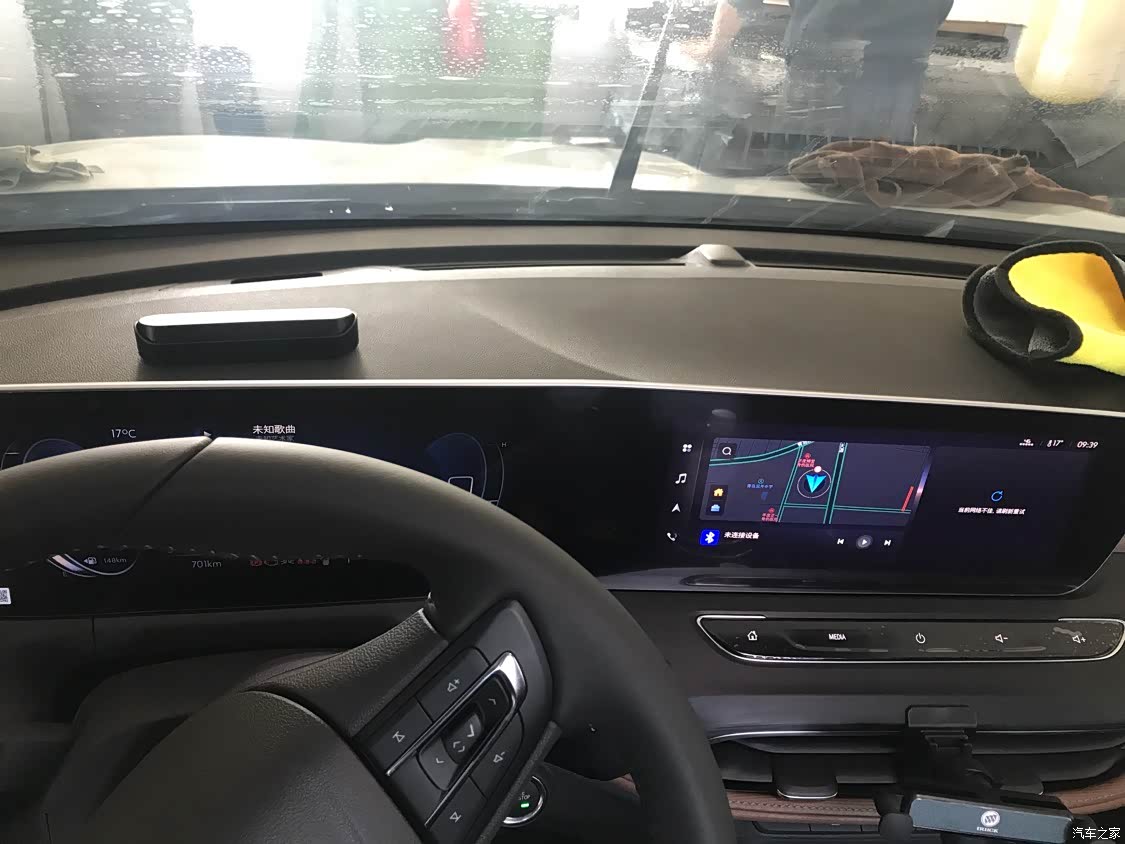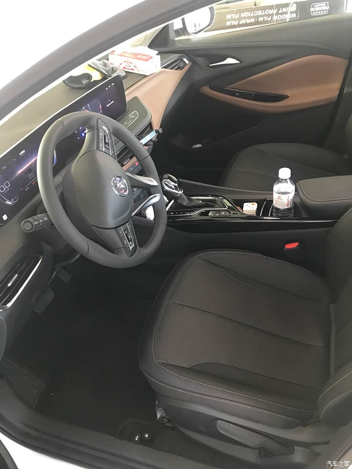 整体来说黑色跟棕色软包点缀的一个搭配挺好看的,新车内多少有味但是散了几天就好了,中控这块还是挺好看的,尤其是这块大连屏,一看就豪华上档次。