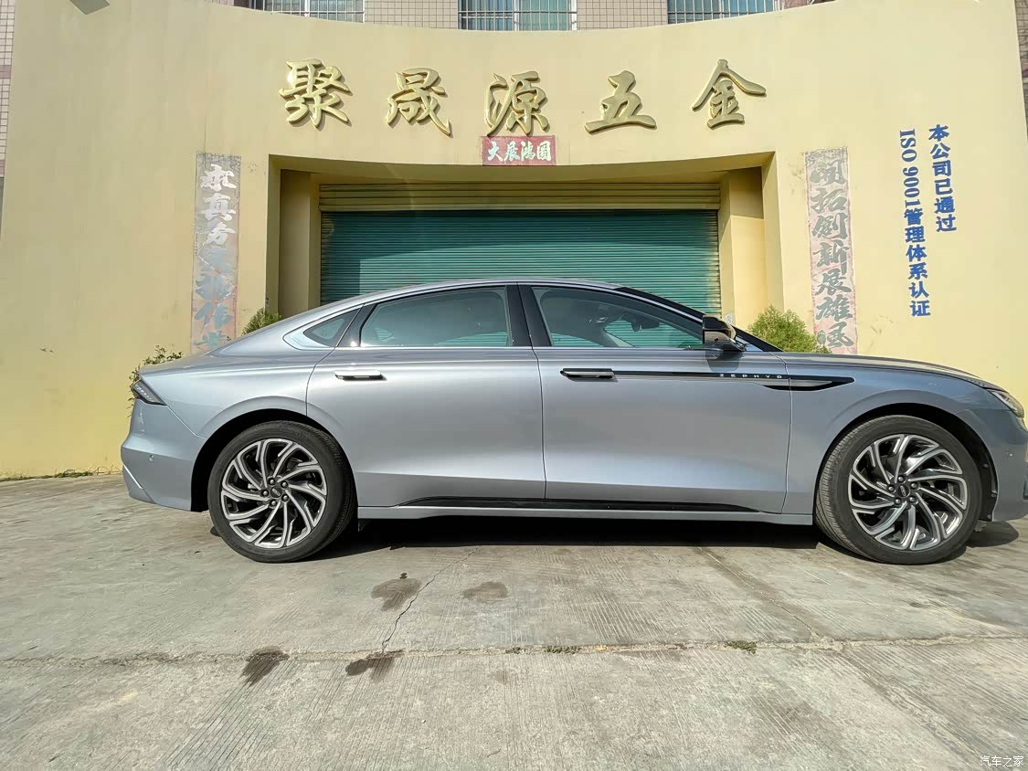 整体侧面的线条非常流畅,隐藏式的门把手,让车身显得非常修长再配合这个19寸的大轮毂,简直不要太霸气