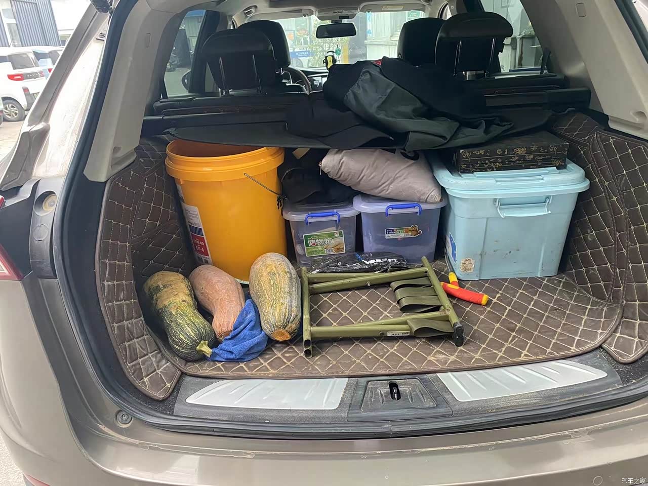 后备箱感觉不算太大,感觉放点东西就堆满了,不过后排座椅还可以放倒,也算是够用了吧!