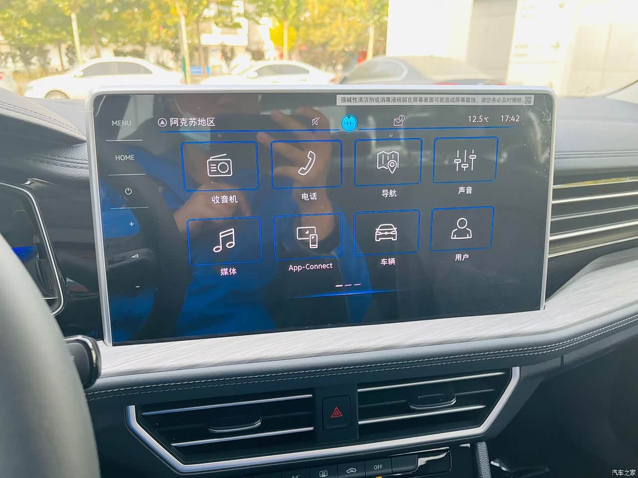 内饰的中控液晶显示屏是我的最爱,清晰度高,而且功能很多,像个小电视似的,操作起来很方便,皮质方向盘手感不错,而且座椅的打孔设计也是我喜欢的,内饰整体软包用的比较多,很温馨的感觉,而且还配备了10色内饰氛围灯,营造温馨浪漫的感觉。