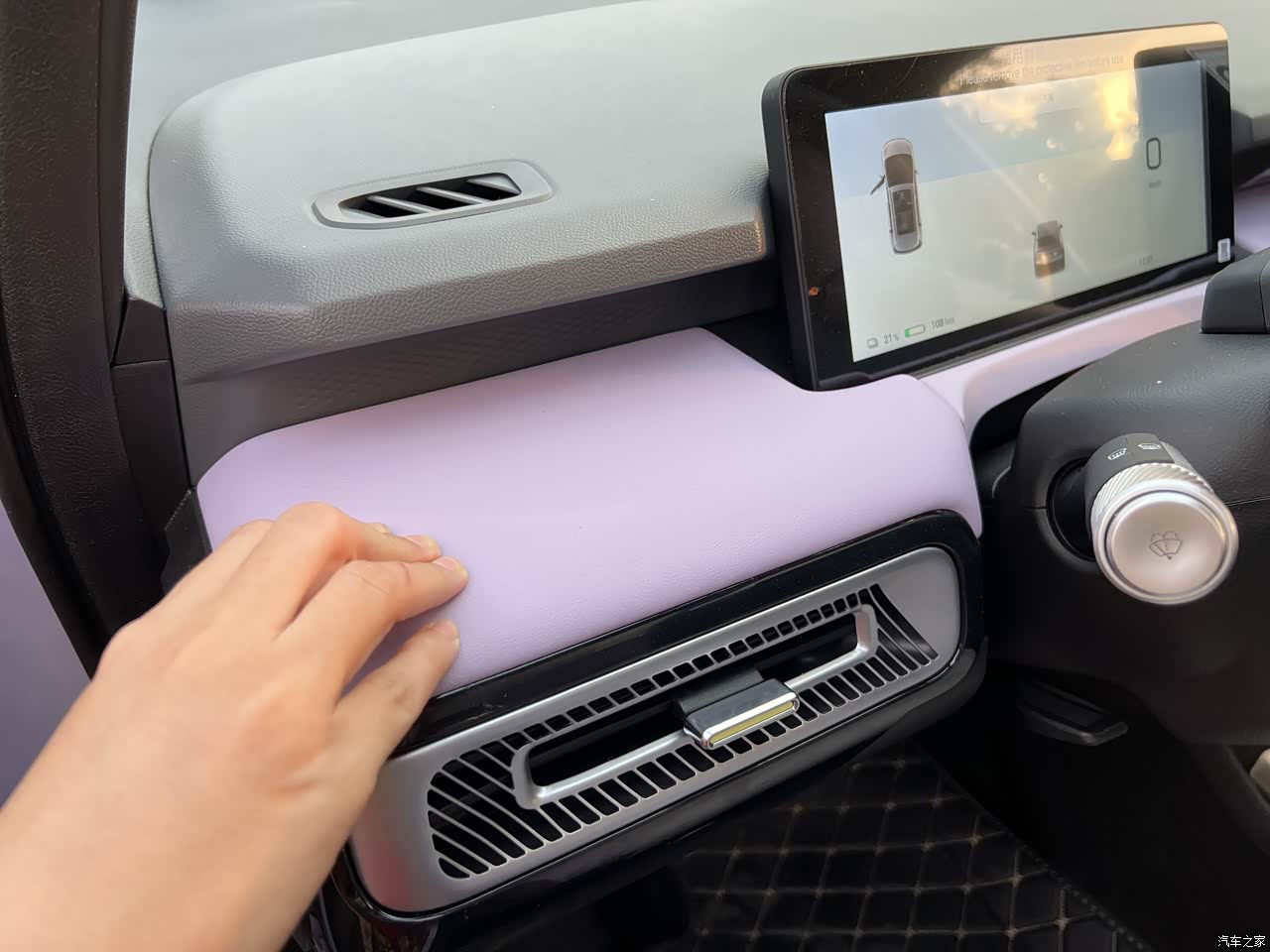 增加了很多软包的材质,App上可以定制自己不同的内饰颜色。紫色内饰亮眼好看,但是不耐脏,还是深色内饰更沉稳更实用,但为了内外统一颜色,我还是选择了紫色。