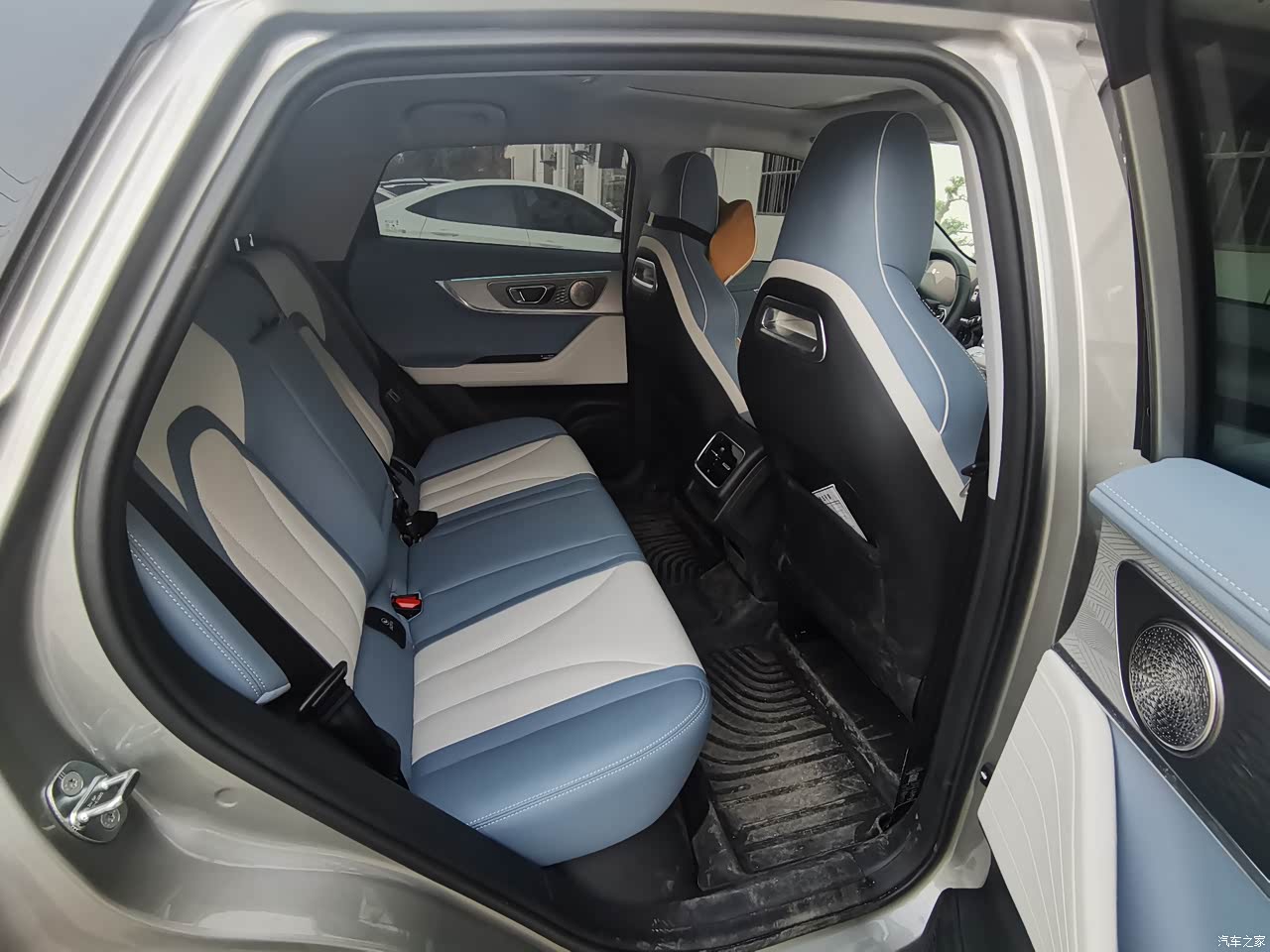 后排空间做两个人很舒服,做三个人还是差点意思。后排平的没有隆起还不错。