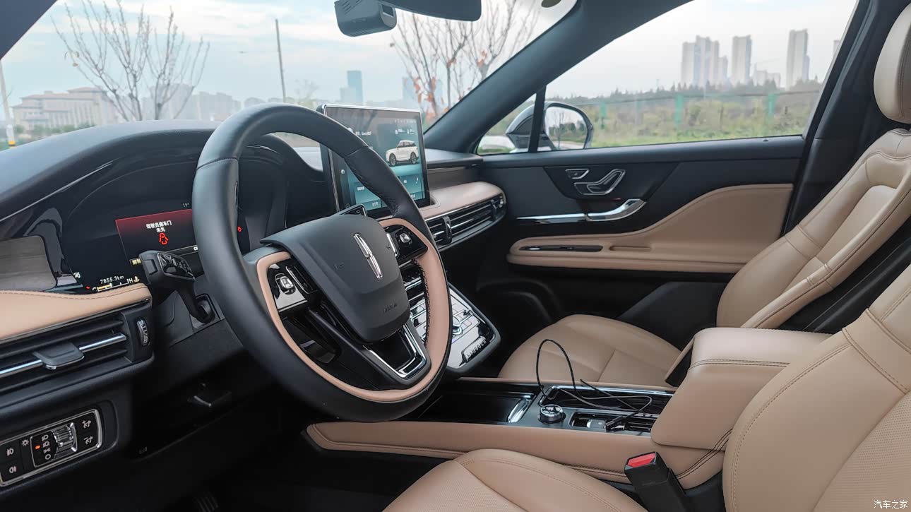 林肯的内饰是要比外观出彩的,由于我买的是顶配,内饰非常的帅气,而且座椅是双层的那种,非常有设计感,12.3寸的中控大屏就像个小电视一样,有点小大,对了按键式换挡也是更帅。