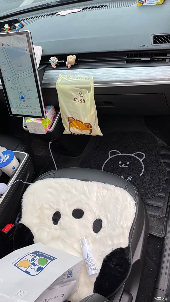 内饰也很照顾女生的想法,该有的特点都有了,不错。我朋友说别急最好不要放太多小东西,我已经尽量浅浅的装饰一下,还是安全为主,保守的装饰一番。不过这个车垫子真的是好可爱啊,嘤嘤嘤,冲!!!