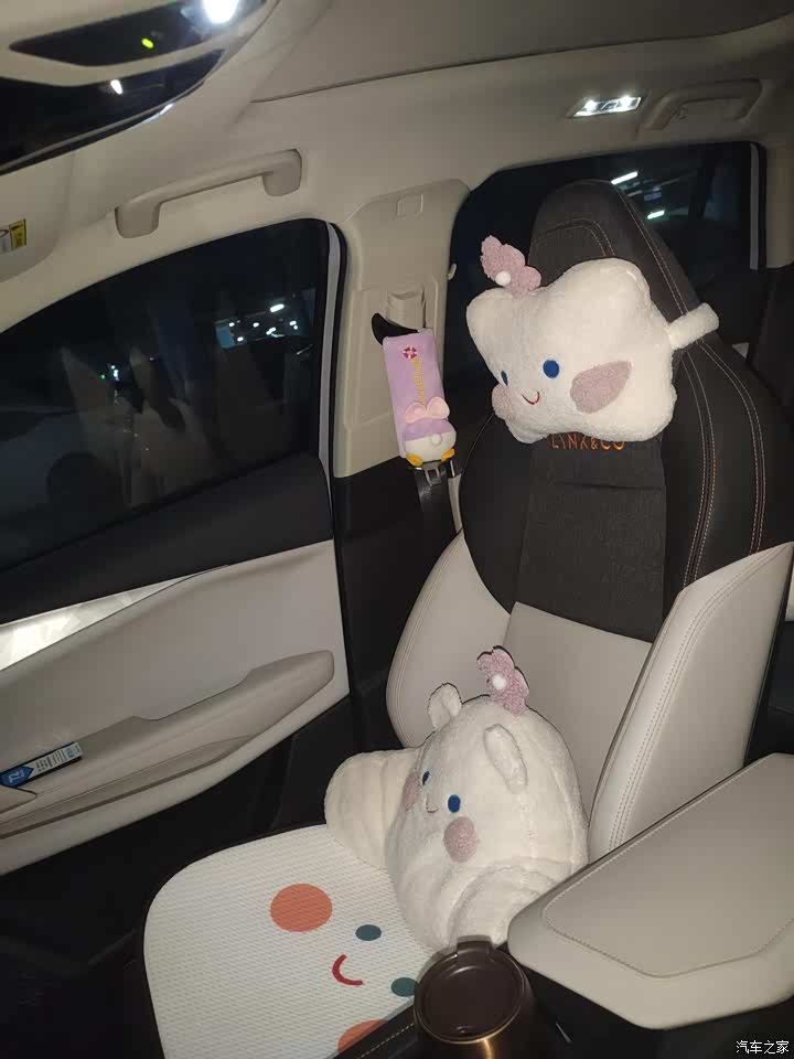 前排空间正常,说不上大,但是内部很多小细节,比如手套箱的挂钩,可以用来挂早餐;杯架稍微有点小,各位如果要买垃圾桶或者杯子一定要提前量好尺寸。