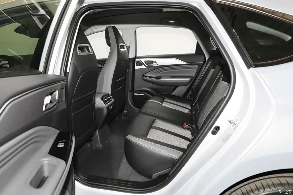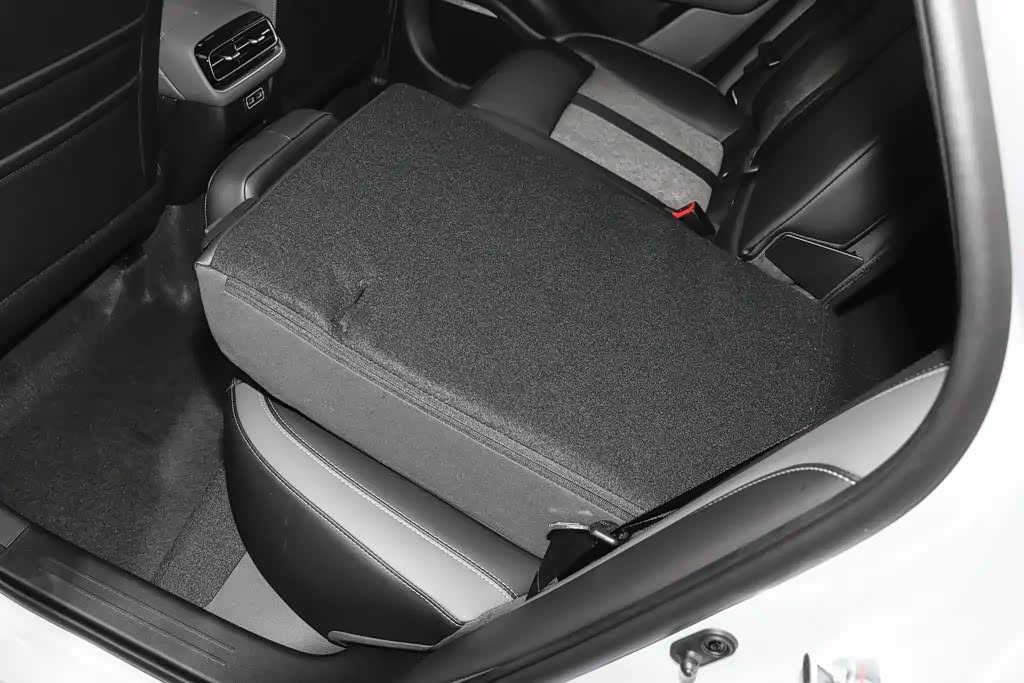 由于纯电平台 家人开始都把腿岔开坐(习惯了油车)后来提醒了才发现几乎全平.空间方面.可以翘起二郎腿乘坐,可见二排空间大小.