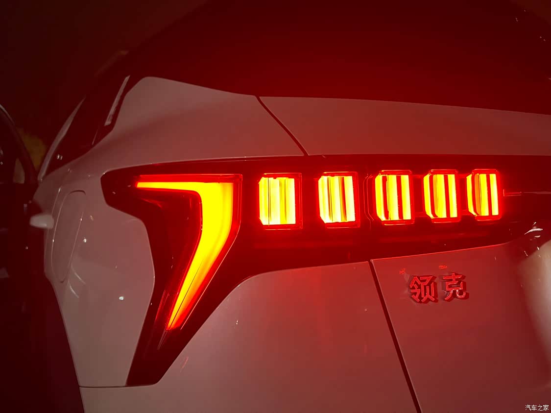 外观来说就是和领克家族式不同造型的尾灯,领克全系独属于09/06的机械燕尾能量晶体尾灯,夜晚非常的霸气,辨识度也非常高,赞