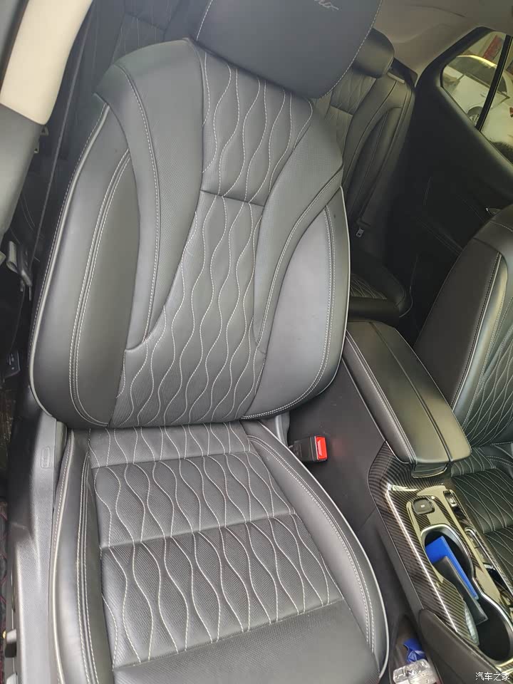 整个内饰的座椅用的是黑色带透气孔的透气性真皮,加上白色的内缝线设计是比较简约又档次的,然后门板设计我也是比较喜欢的,整个一个黑色的门板儿上面加了一块儿木制的材质亮点儿,我觉得非常有设计理念。然后就是主驾和副驾乘座仪表台这里的设计主架的设计偏方向偏向主驾,副驾设非常立体,没有因为主驾设计副驾被遗忘的感觉。我觉得这个设计非常安慰副驾的。