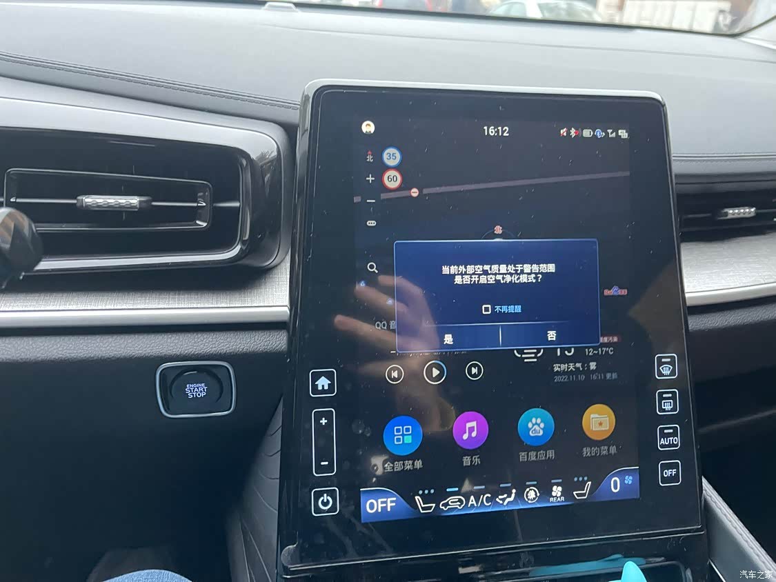 自动检测外部空气质量,温馨的提示开启内部循环,很贴心的服务