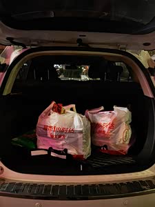 俩人开后备箱是完全够用的,上次封控买了500多的菜也有富裕