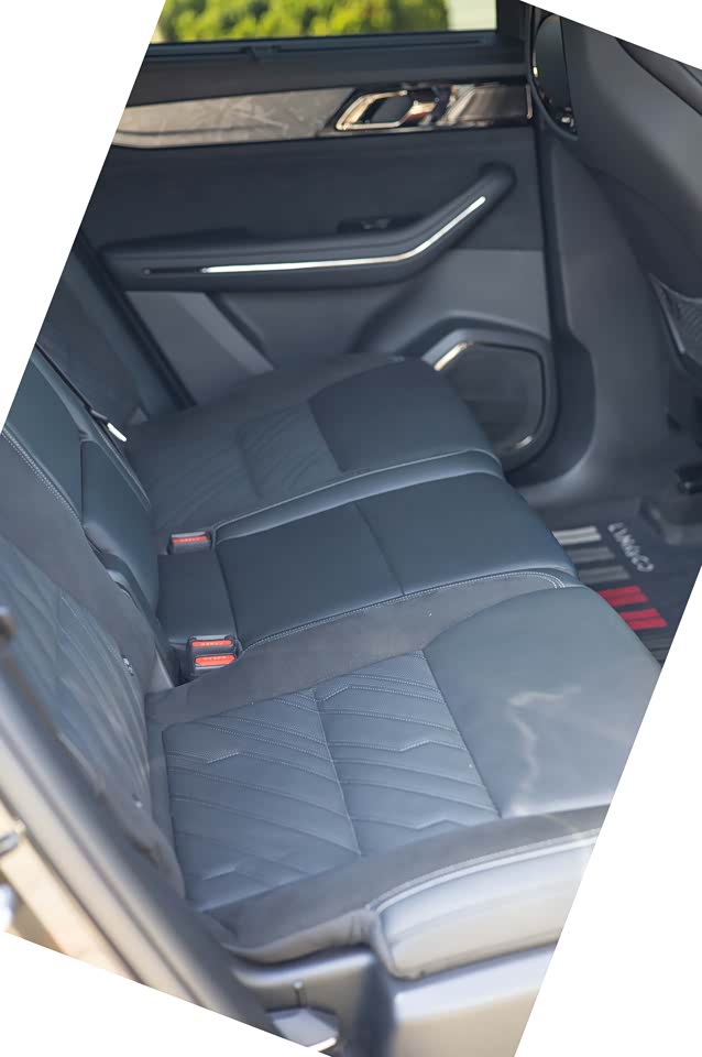我选的黑色内饰,相比于其他颜色内饰,黑内09的车门和座椅侧采用的是翻毛皮装饰,高级感十足,黑色也更显低调奢华。中控采用了6连屏的设置,两个小的空调旋钮实际是两个小屏幕,集成了空调、座椅通风、座椅加热、方向盘加热等调节功能,方便实用。14个Bose音响也尽显豪华。全车座椅采用环保nappa真皮制作而成,一点异味都没有,对比其他豪华品牌,内饰非常环保。双层夹胶隔音玻璃、二排遮阳帘的配备,使得全车隐秘性及隔音效果都非常好。副驾驶后排车门处配备了老板键,方便实用加之满满的高级感。