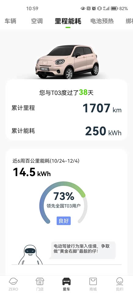 就是电车受温度影响确实太大了,对北方不是太友好啊!十一月刚买的时候,气温十多度能跑三百七八十公里,12月初寒流来袭,气温突降,下班一看里程掉了四十公里!吓死宝宝了!不过最近媳妇开车,家里和单位都有地下车位,基本也是一比一得掉里程! 如果没有地下车位,就这大冷天,我真的焦虑,害怕开着给冻半路上。零下十度 估计能跑二百公里!