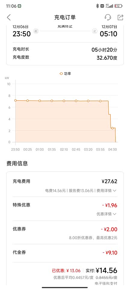 目前所在小区有充电桩,其中一种是易充电固定价格2.2一度,太贵了!还有一种是特来电充电,分段计费,夜里充八毛多,非常合适。电池充到403公里,其实有十来公里的隐藏电,差不多开了15公里开始掉电,现在气温平均零下七度,能开两百公里吧。十一月的时候十多度能跑370公里吧。