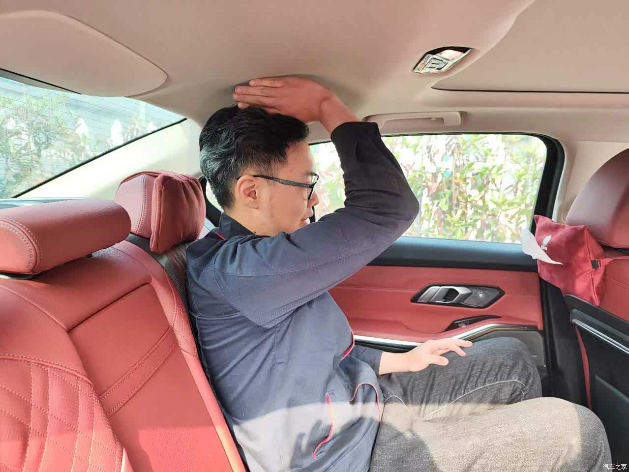 后排头部空间,调到合适位置头部5指。模特为同时,身高180!