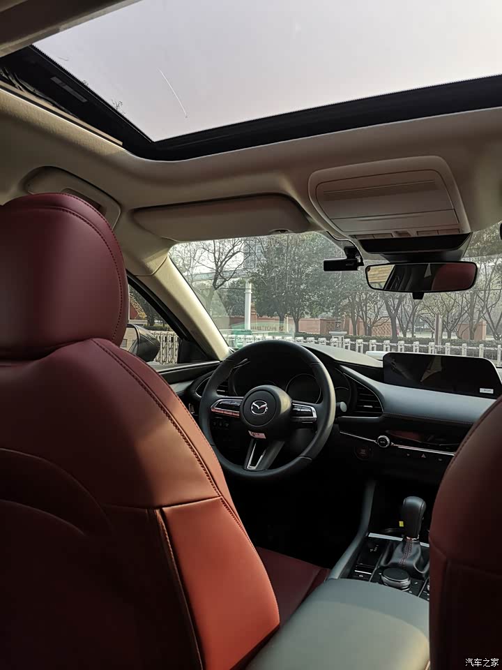 内饰令人赞叹不绝!大小适中握感舒适的真皮方向盘,各个物理按键分布合理。整车在你触手可及的地方:中控面板、车门内衬、中央扶手箱两侧等处,都是真皮包裹,诚意满满!我买的黑曜版还是红线缝合,很有些运动气息。在当今车市大屏满天飞的潮流下,昂克赛拉依旧是采用8.8寸的小型主机屏幕。并且采用前排扶手箱前的旋钮来操控主机,这样于我而言是既美观、方便,驾驶的安全性又得到了保障。不喜欢一些车子中控屏做的像彩电一样夸张,咱是开车的,注重的是驾驶乐趣和快感,要那么大“彩电”干嘛?!甚至是其内更多的功能我认为都可有可无。还好,昂克塞拉这一点做的是恰到好处,懂我!贴心!层次分明又简洁的中控台、三炮筒式的仪表盘(还有时速表和指针表可以切换)、宽大的中央扶手(让你开车时右胳膊肘可以很自然的搭着,舒服而不会感觉到累)以及软硬适中黑曜版专属勃艮第红真皮座椅,令你目之所及,皆是称心和满意!