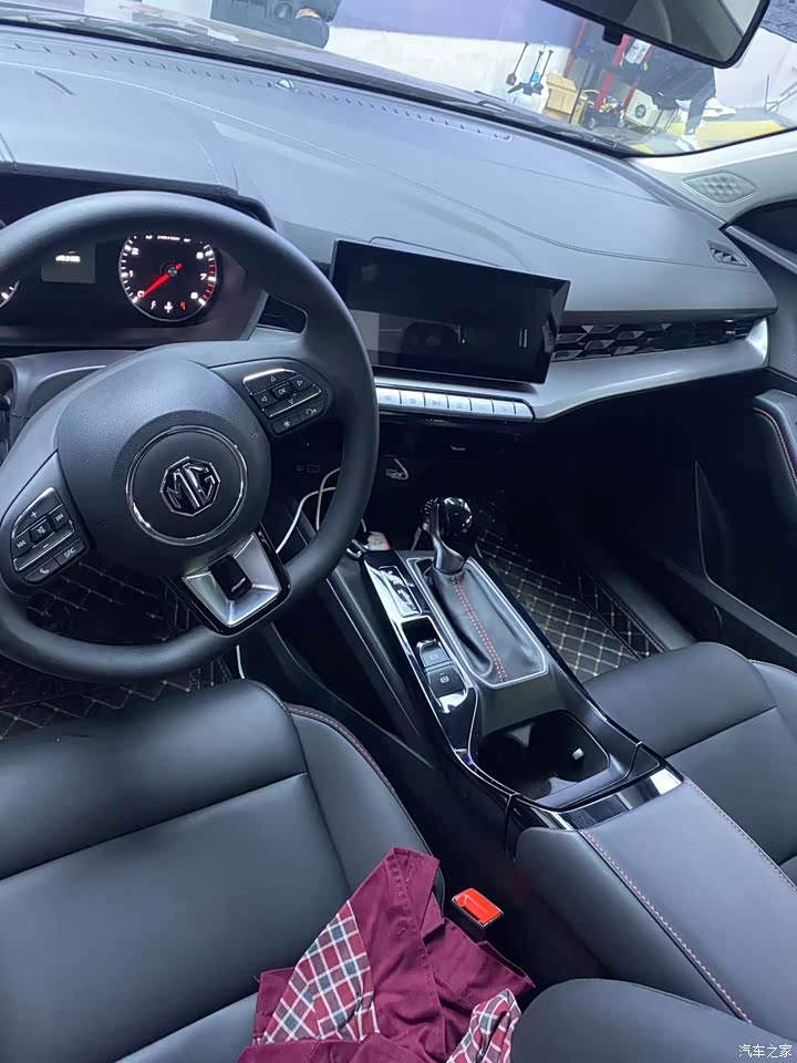 内饰简洁,采用了很多菱形的元素,估计是想提升运动感。但是车子价位就摆在眼前,没有什么特别惊艳的地方。内饰硬塑料的地方还是蛮多的,座椅还行,坐起来还算舒服。换档档把不喜欢,显得很廉价。中控屏幕的分辨率不高,屏幕下面的按键松松垮垮的,质感不高。新车的味道比较大。