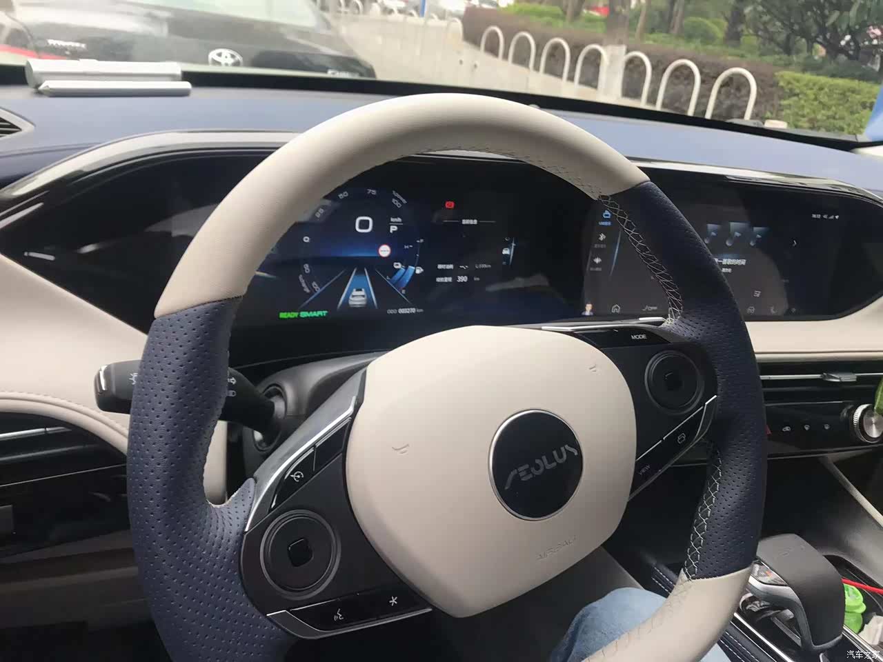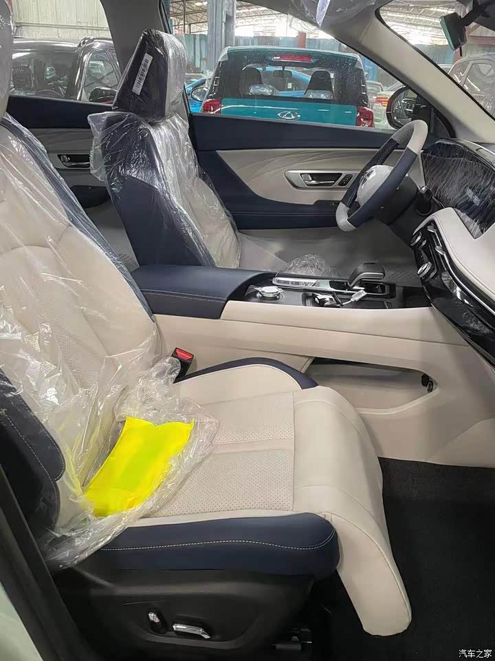 选用蓝白内饰,看着非常时尚,大部份位置都是采用软皮材料,做工也很精致,座椅包裹性不错,软硬适中。