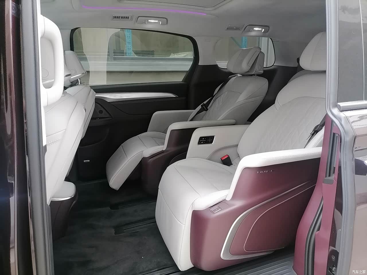第二排有一个很大天窗,能够明显提升第二排的空间感,更加的透亮,采光也更好。车内有个顶灯是LED,很方便遍晚上玩手机和看书。第二排的航空座椅带有腿托按摩,通风加热功能按钮在车顶上面,使用起来方便,第二排天窗遮阳帘还是电动调节,高档又便利。艾维亚内饰选择的是双拼的颜色,为此还多加了4000块钱。艾维亚送了两次保养。