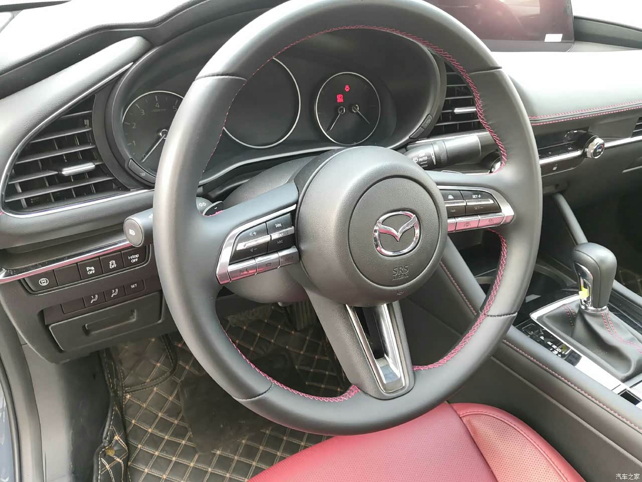 车里面看着也精致,更重要的是马自达的驾驶位座椅坐的舒服,感觉很协调,而且还是真皮座椅,坐起来很舒服,之前也看了几款同级车,但没有这个配置,中控台也跟外观一样不复杂,一目了然,前排的USB接口有两个,值得点赞。