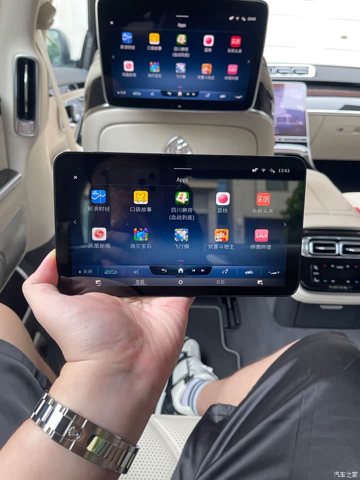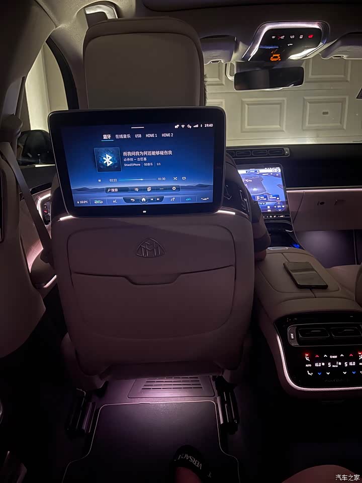 后排乘坐感很舒服陆地头等舱名不虚传,比普通S级的后排要大的多两个脚都可以伸直