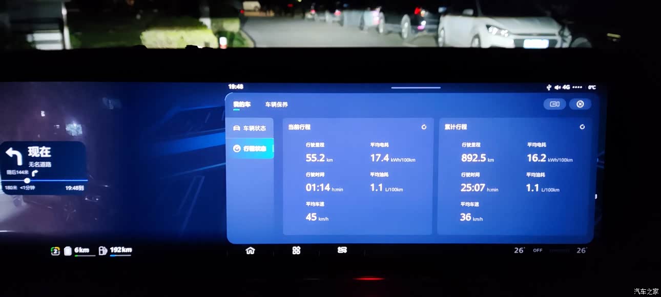 我这个车主要是作为我的上下班使用到我们公司差不多接近60公里。车辆充满电车机显示55公里。实际驾驶如果不是一直超高速行驶或者严重堵车纯电是能够达到55公里的。但是如果你要是使用空调,那就多费两个油。