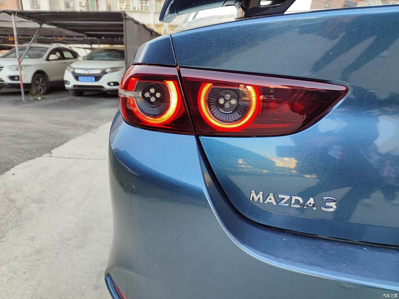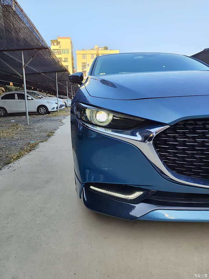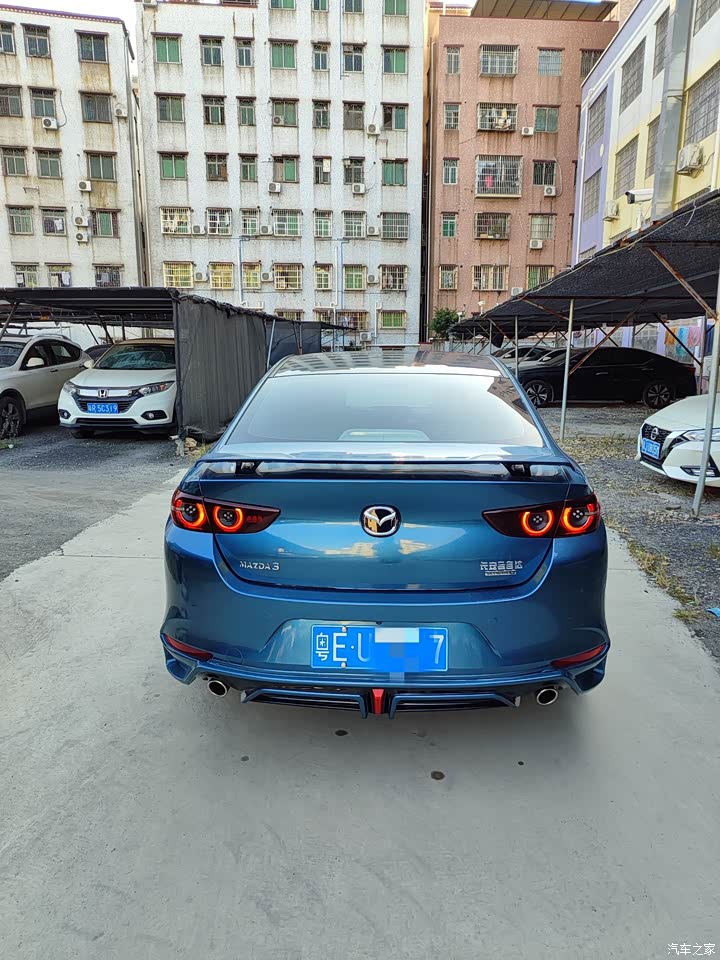 车的外观也是我买车必看的一项,马自达的车外观是最符合我的审美,不管是外形还是内饰都是简约型,我不太喜欢夸张复杂的类型,所以这也是我只小改的原因,加个尾翼,前后小包围我觉得就够了,改太多没必要,因为这个车本身就是运动风格,唯一我喜欢与众不同,所以改了一个少有的颜色,有点像以前旧款马三的蓝色,原车身颜色是白色的,因为不加价,所以选白色好贴外观颜色,明选包也是必须要➕的哈,这个尾灯帅极了,行走在黑夜中就是与众不同