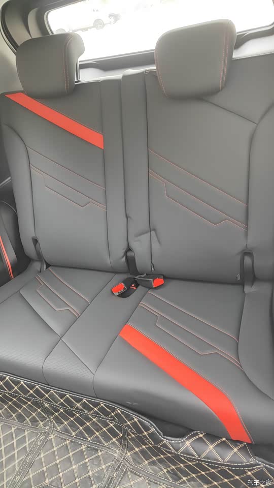 内饰采用的红黑搭配,很合理,还都是皮质座椅,坐着也很舒服,材质不错,很温馨