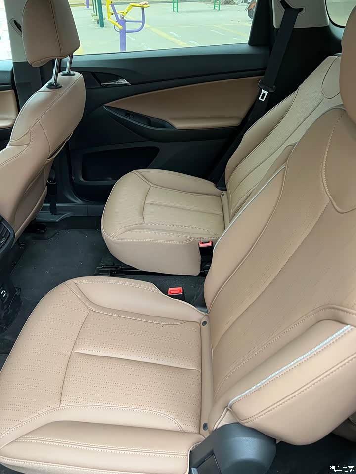 第二排空间非常的大。想当于配备了两个独立的沙发。只是没有他大哥那么多功能。不过也可以了。靠背,前后都可以调节。坐上去还是比较舒服的。