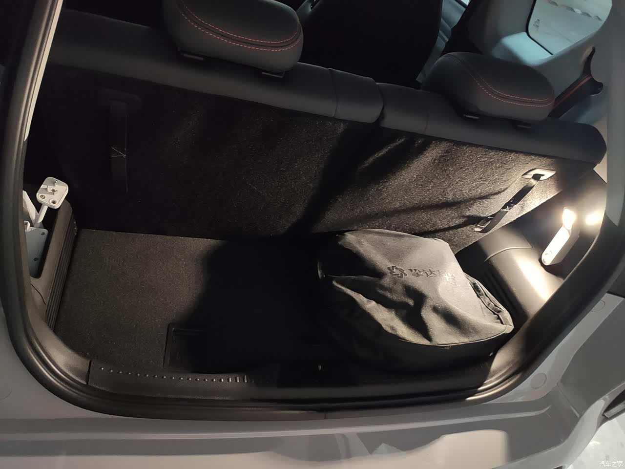 后备箱容积不大,放不了多少东西,但是后排可以向前放倒,这样就能放好多东西了。后备箱还有个问题就是没有配电灯,晚上看不见东西,所以自己买了感应灯粘上去了。
