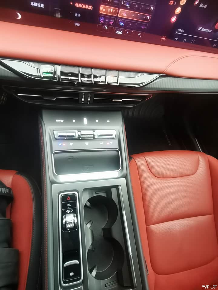 内饰像电车的内饰,科技感强,没有传统的换挡的机构而是按键的换挡。内饰整体我觉得还是好看得,超长的屏幕加上一些工整的中控台,低调也不失豪华感。