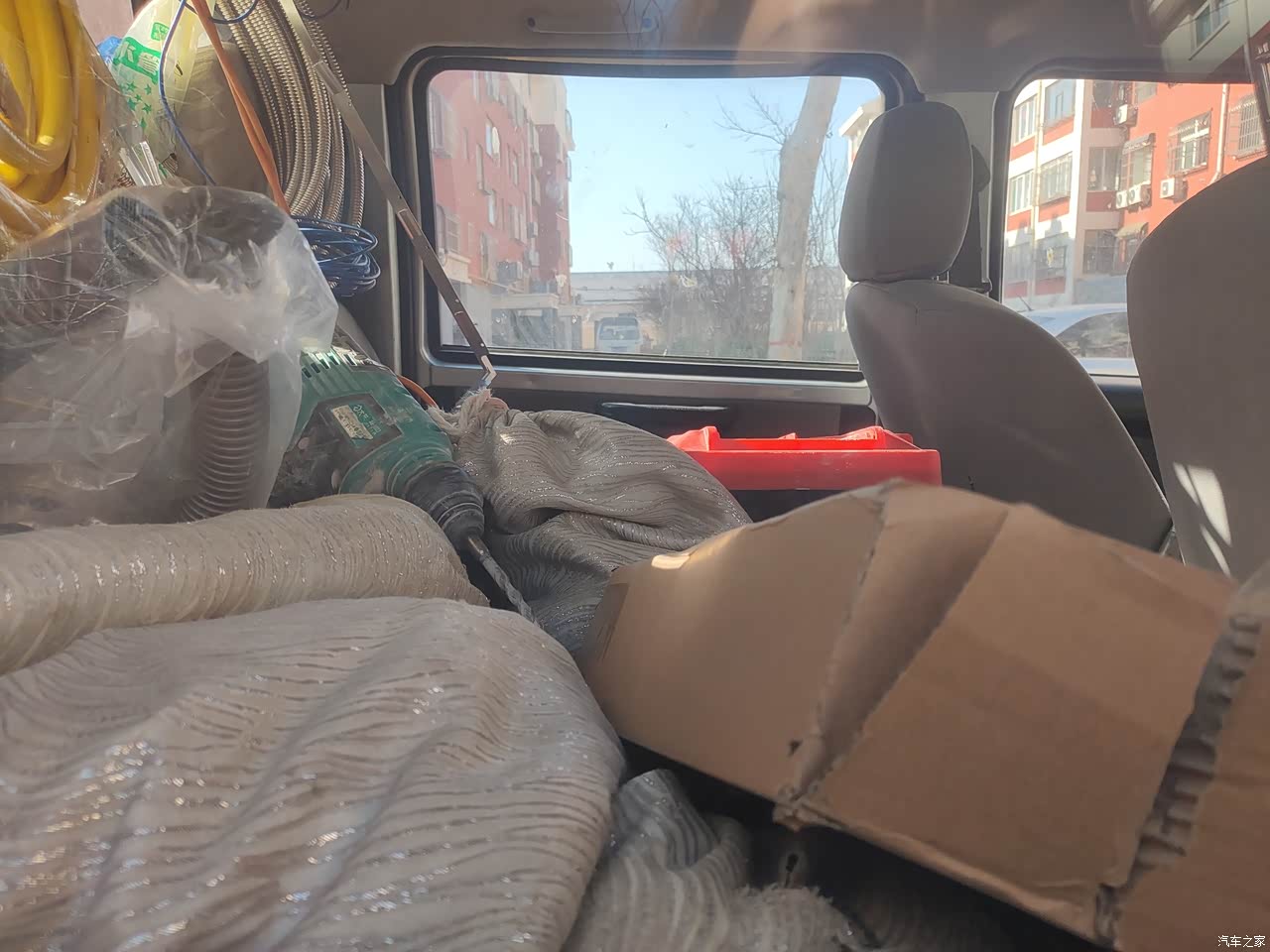 驾驶室的空间很大。腿部和头部空间都很宽敞。坐五个人一点儿都不拥挤。货箱长2.5米。足够我拉货用了。有时候货箱不够用了,我还可以把货放在第二排座椅上。感觉挺方便的,既能拉人又能拉货。