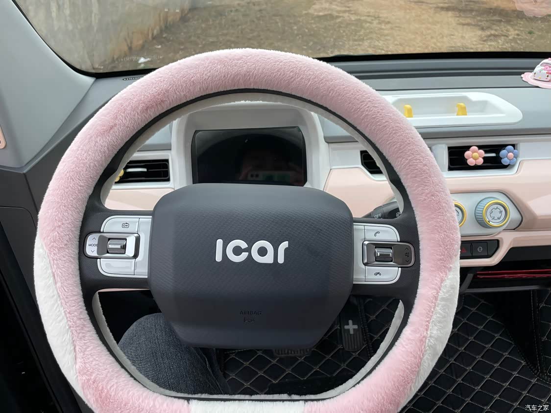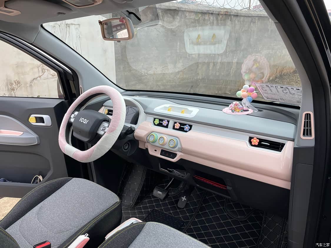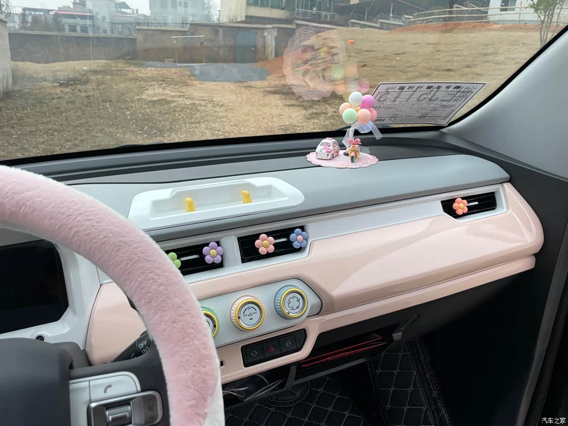 内饰中规中矩吧,这个价位的车也不能要求太多了。自己在网上淘了一些装饰件回来,贴上立马比原车的黄白搭配更加可爱了,适合小女生。