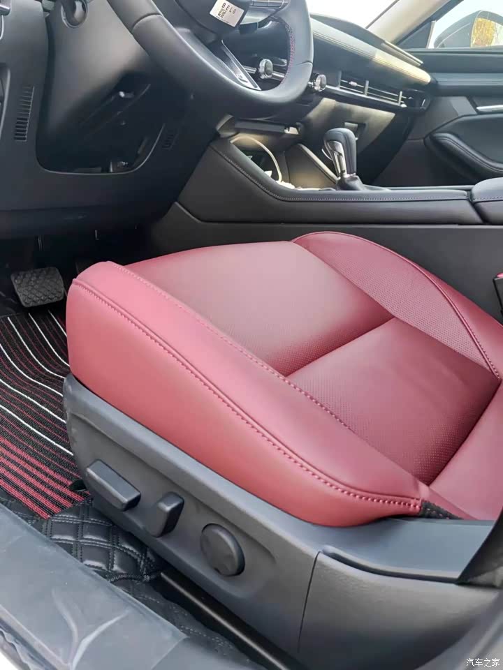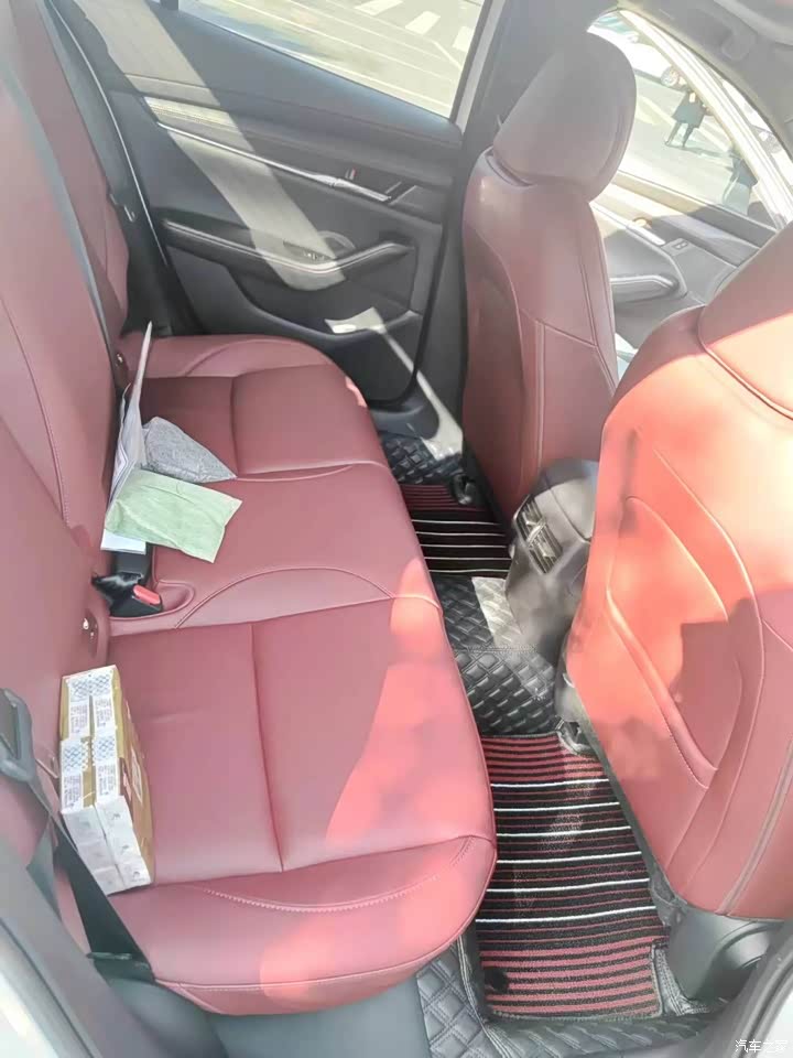 这个座椅是一种叫勃艮第红的真皮座椅坐上去确实觉得全身每个支撑点设计的都非常科学,可以将你的全身支撑的非常妥帖,而且他的座椅长度非常可以,颜色非常非常的运动。