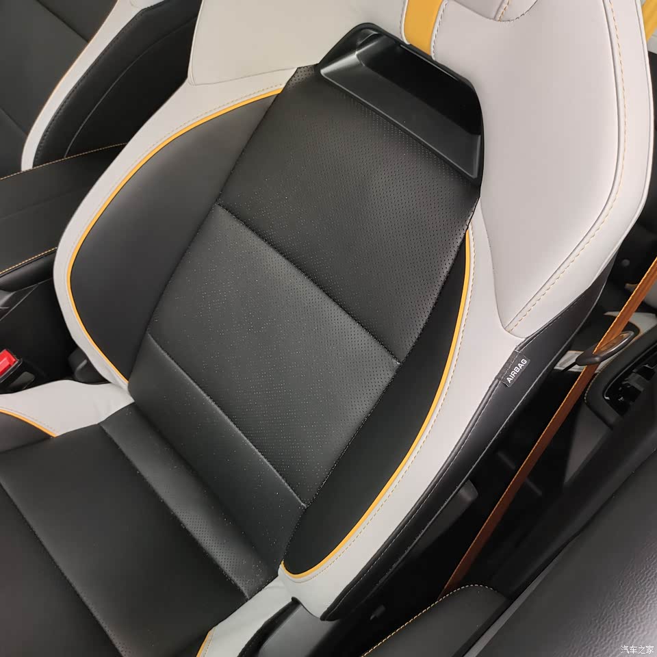 车内布局,尤其是这个双连屏和这个飞机挡把,看着非常有靠近感,加上中控台的软包装,档次感马上就上去了,还有无线充电,有方向盘矩形的,加上双拼色座椅和黄色安全带,运动气息直接拉满! 对了,有个小缺点,顶配居然没有天窗,这个玻璃天幕大太阳稍微有点晒,不知道夏天怎么过。。。。。
