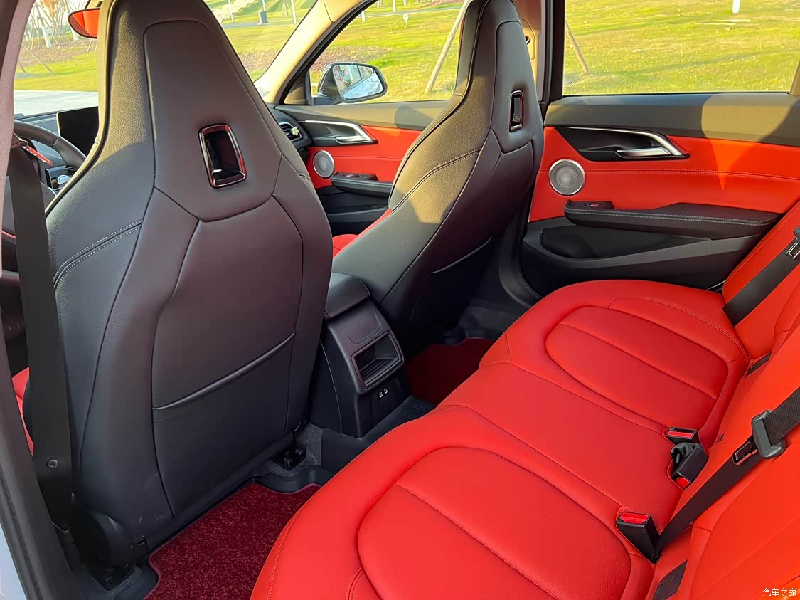 白色外观配熔岩红的内饰,前排运动座椅,时尚、运动!