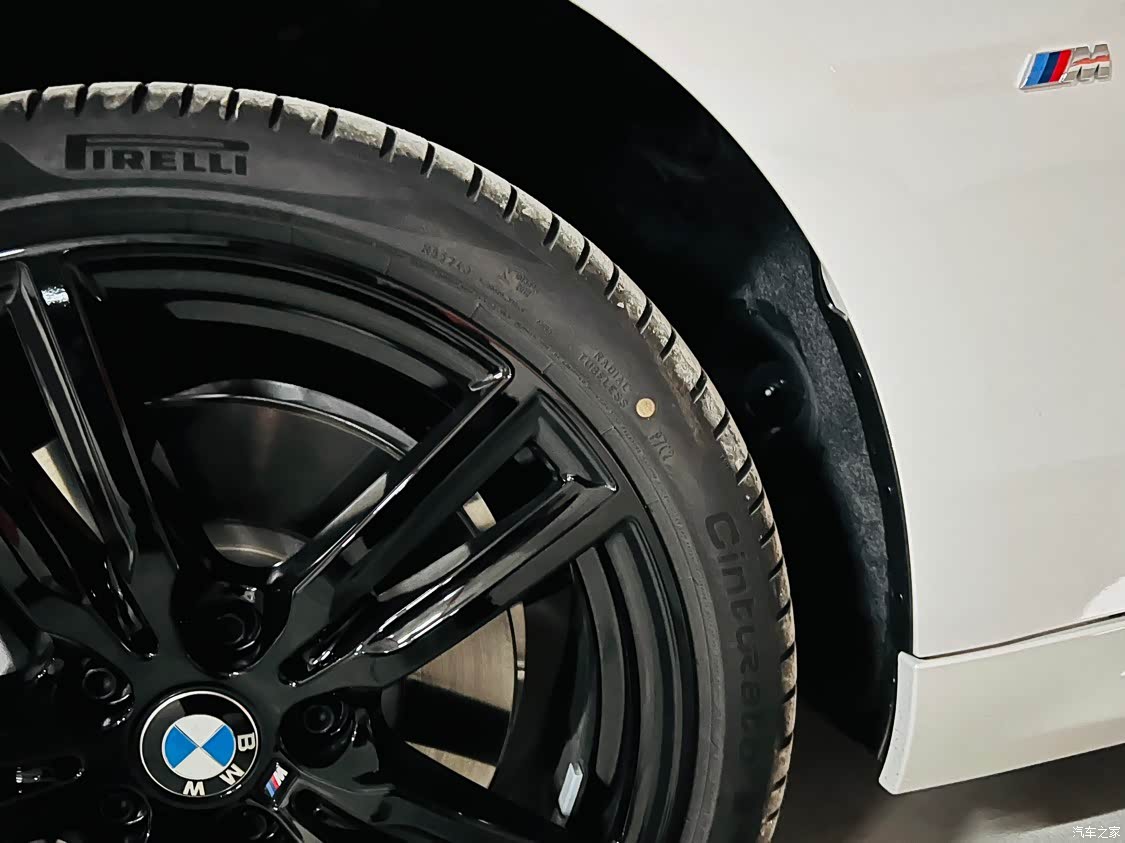 宝马标志性的“双肾”中网,车身流线设计,因为是运动曜夜版,中网、后视镜、车窗饰条、轮毂都进行了黑化,车身和四个车轮都贴有宝马M标。