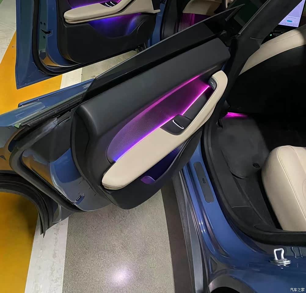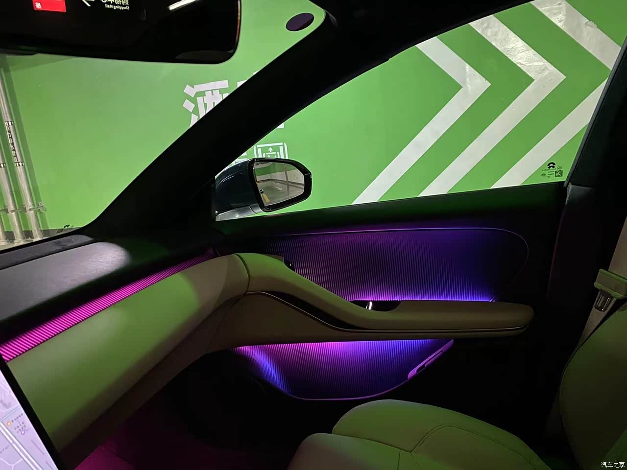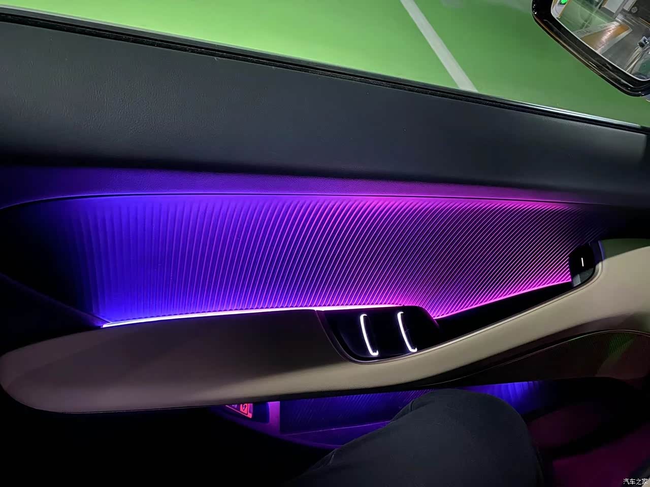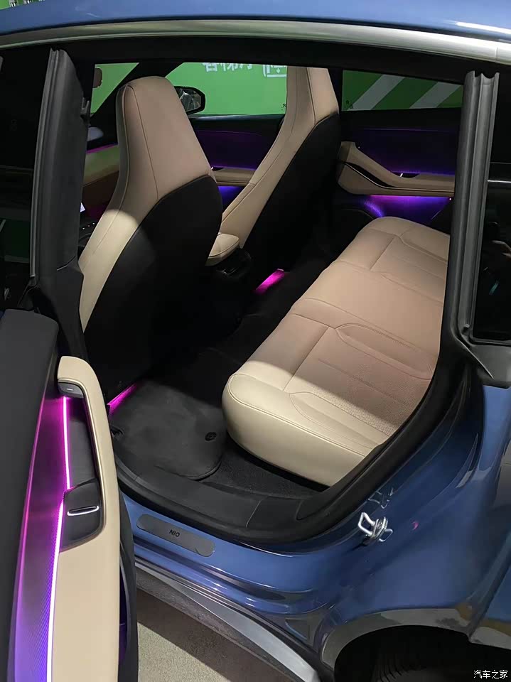 氛围灯和音响系统,比蔚来一代的产品强大了很多,氛围灯升级到256色,音响系统也是杜比全景声的声效,感觉还是很爽的。内饰的设计我很喜欢,整体搭配包括方向盘都是一个颜色,门板上的渐变效果还是棒,基本上满足了我对于智能感驾驶的期待。我还选了舒享套装,这个我觉得还是有必要加的,因为这个功能能增加一个腿托伸缩的功能,很舒服,我觉得选配舒享套装挺好的,还多了香氛等等功能都很实用。