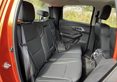 超过3米1的轴距,外观看尺寸就很大,实际空间也确实如此。乘坐空间方面,我身高172,各个位置都很宽敞,坐在后排能轻松翘起二郎腿。而且因为本身方正的造型,后排车顶够高,车内的垂直高度充足,坐着很放松。同时,D-MAX的后排地板中间凸起能接受,横向也很宽,带上一家老小,坐5个人不会觉得拥挤。后斗方面,长度没的说,拉各种工具都不在话下,很方便,偶尔还可以拉猪、拉饲料那些,相当能装。