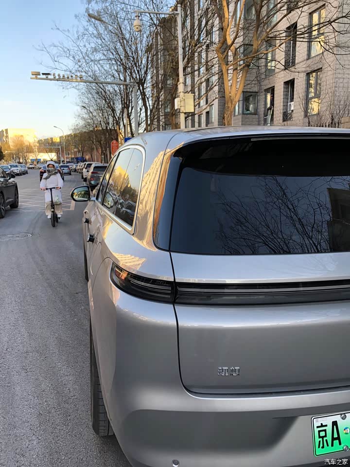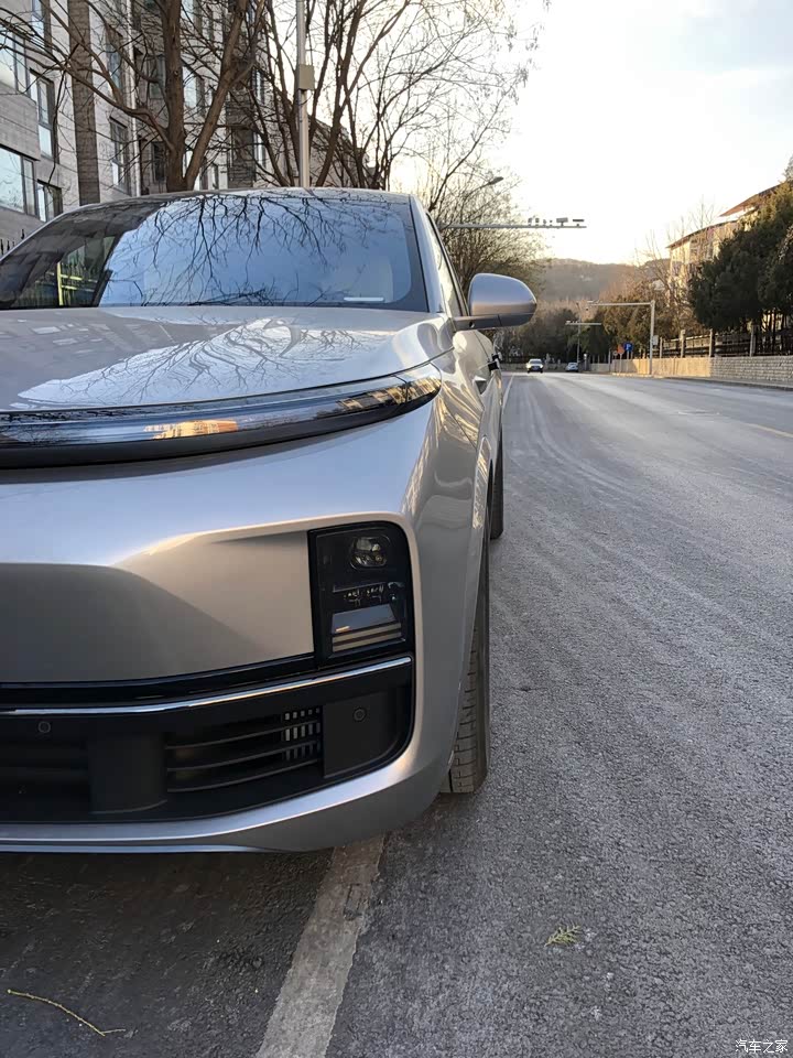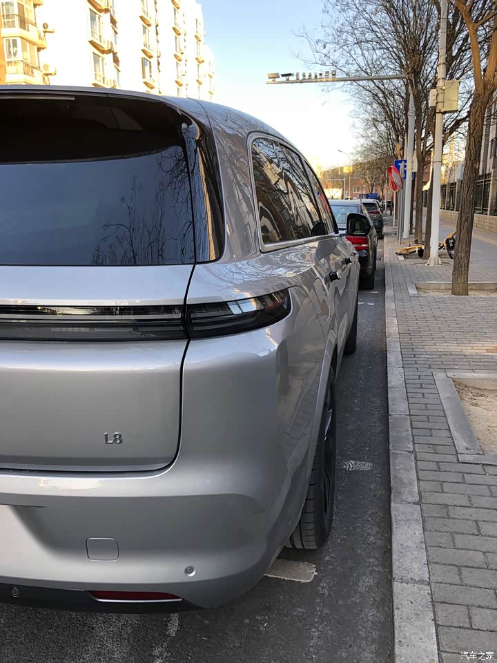 整体来说,我觉得颜值很高,45度角是最美的。颜色方面,最开始是想买白色的,但L8发布时没有白色,只有L7有白色,后来开始看黑色,想搞个黑武士造型,最后再看了各个颜色的实车后,最终选择银色。银色整体看有点像GT银,在不同的室内室外光线条件下会呈现不同的视觉效果,室内有点像水泥灰,室外强光下又有点泛出金色光泽,总体来说是不错的,这个颜色也很耐脏。