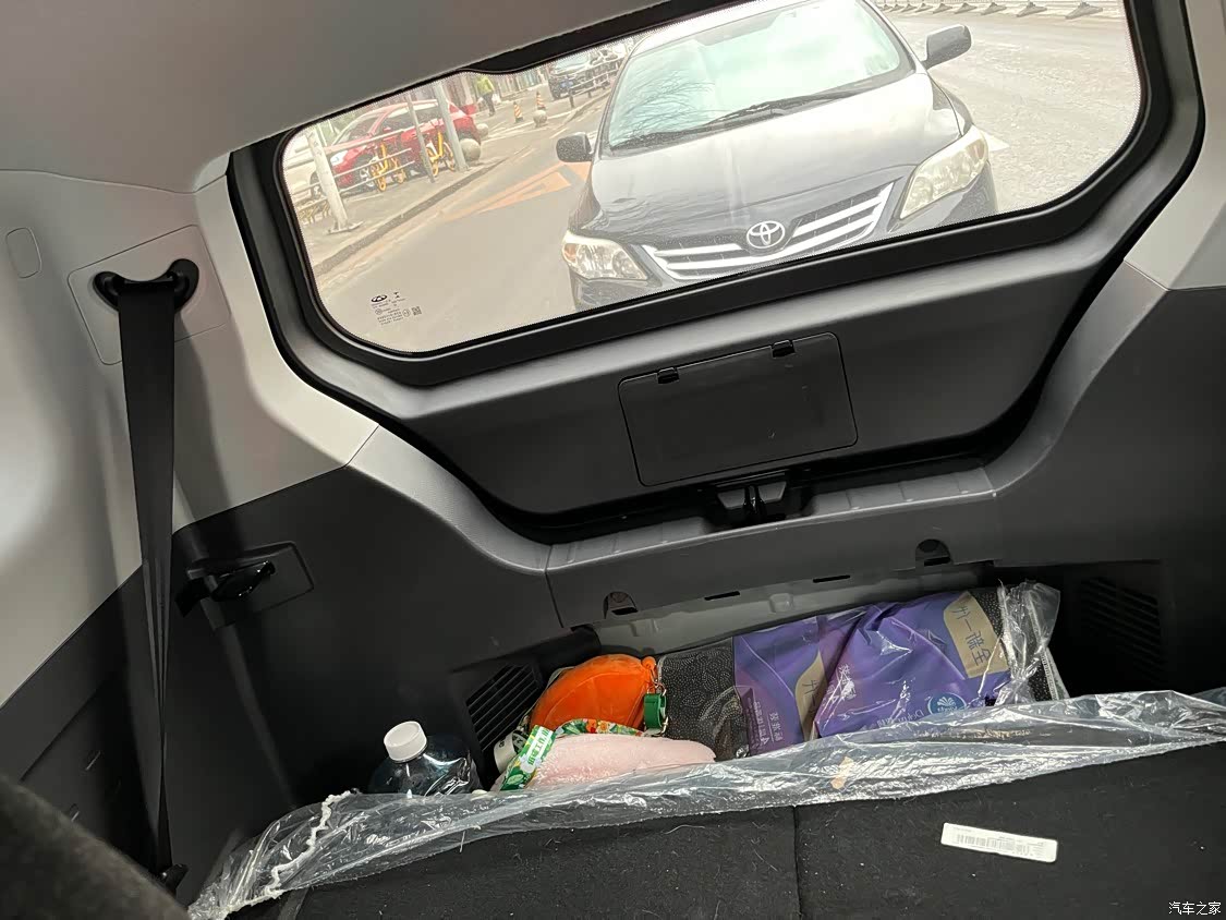 空间特别大,而且它不像正常的轿车后备箱是半个空调,因为他可以把后排座位放下去,所以它是整个的空间,可以从下往上放东西,直接放到车顶的位置,这样就相当于别的车两个后备箱,搬家真的很便利