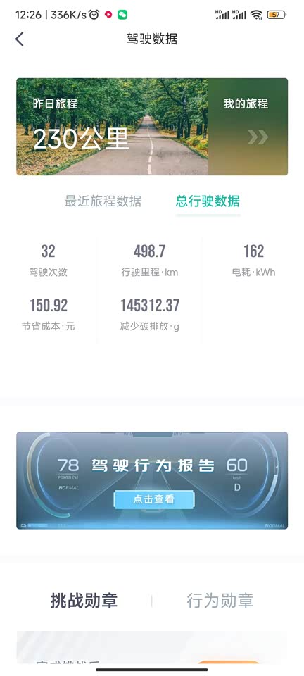 电车续航主要跟天气和时速有关,买车前我了解到了市区驾驶实际续航400公里左右,高速实际续航350公里左右,相对我来说够用了,虽然续航少了点,但后续家里装电桩了充电方便且便宜,所以无所谓。目前续航打折是电车普遍存在的问题,没办法。
