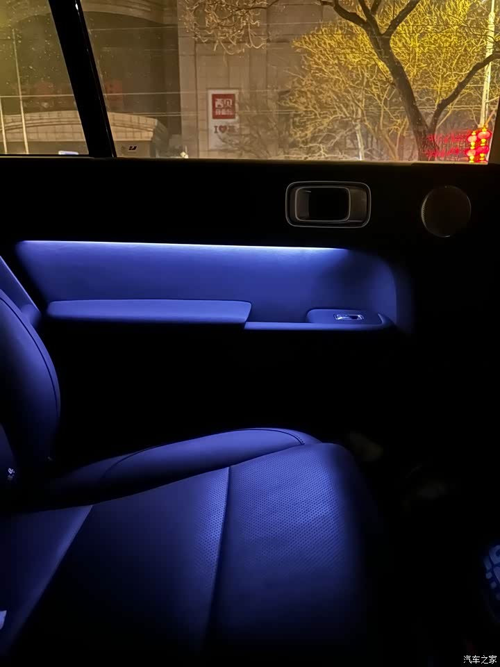 氛围灯256色可调,但是区域有点少,黑色内饰白天氛围灯不明显,白色内饰更明显一些。