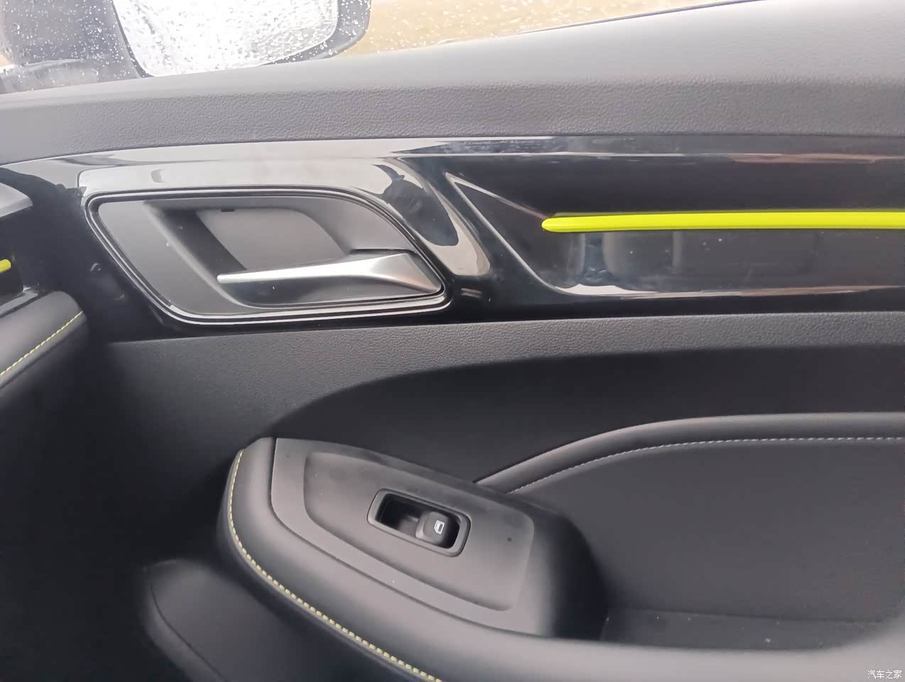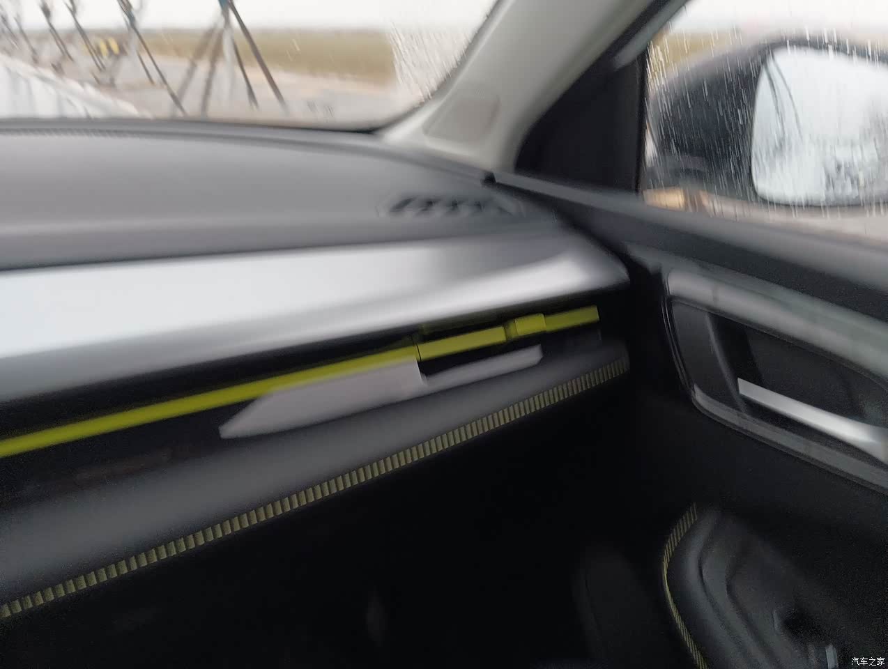 内饰大部分是塑料,但主要还是软包的,第一眼看到这个内饰的时候内饰还是觉得眼前一亮的,尤其是那一波绿色,还是非常的不错的。
